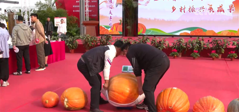r走进“赛丰收”活动的现场,工作人员正在认真地测量西瓜、南瓜、螃蟹的重量。参加比赛的农产品有蔬菜瓜果,也有谷物和水产。既有重量大小的“比拼”,也有口感香味的“较量”。